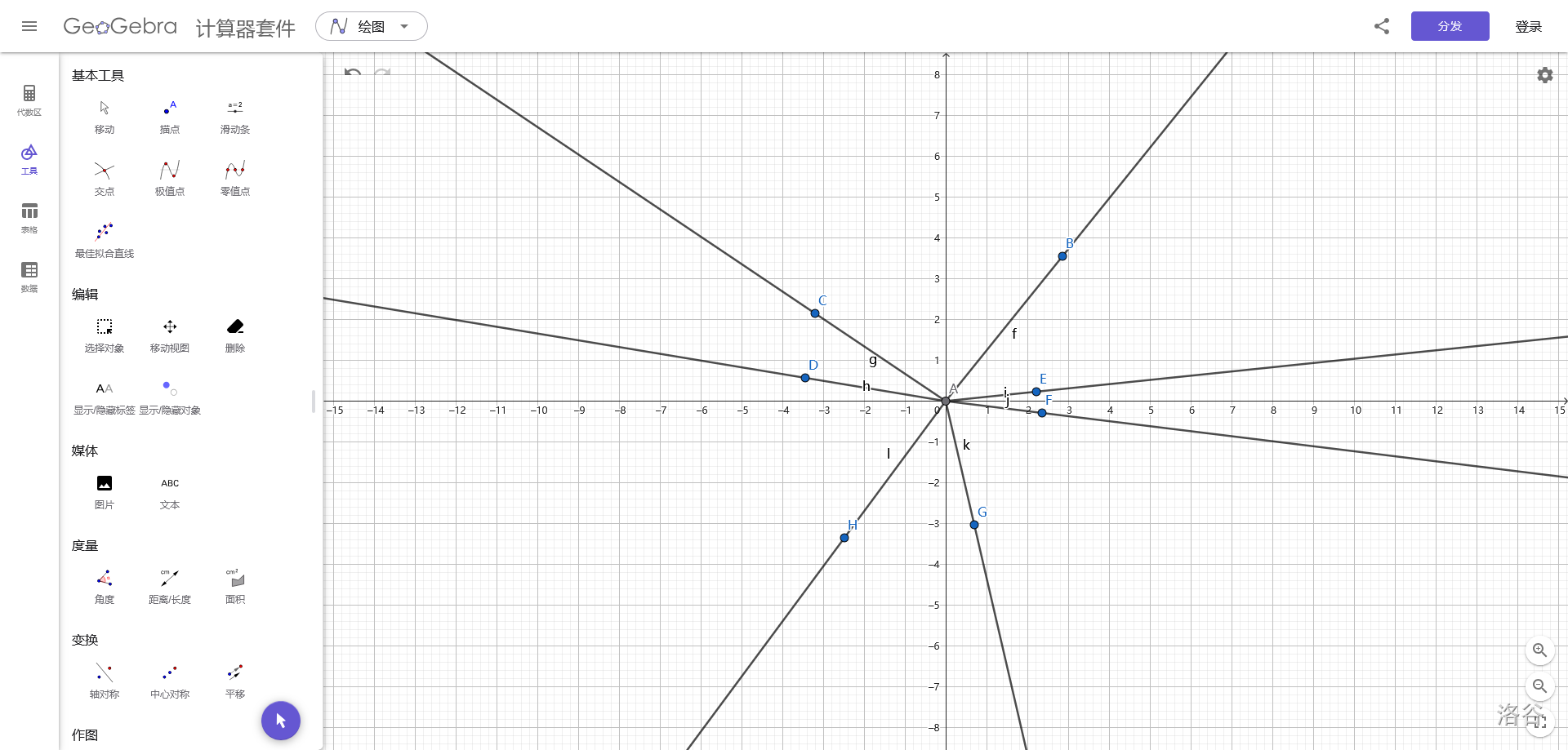 如图,这里有 $7$ 条射线: